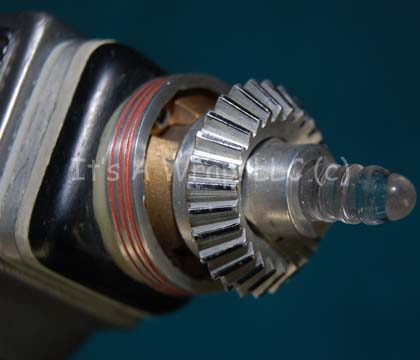 Description: A prop believed to appear variously in episodes of Star Trek: Voyager but definitely appearing in the Star Trek: Borg Encounter 4D. the item is an injection molded plastic scanner painted metallic gunmetal with a light up sensor on the end and anon-functional display screen with a multi-colored LCARS style (Library Computer Access and Retrieval System) graphic embedded internally. The item is powered by two banks of 2 AA sized 1.5volt batteries, the leads to the ‘display screen’ are severed but reconnecting them has not proven the repair the lighted feature therein. The item measures approx. 9 X 1.75 X 3.75 inches.