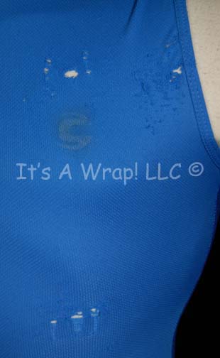 Description: A costume featured in the Star Trek: Enterprise episode “Two Days and Two Nights”; wherein several members of the “Enterprise NX-01” have varying degrees of relaxation on their shore leave to the pleasure planet of Risa. This costume is for wear by “Travis Mayweather” (Anthony Montgomery) and is a pair of form fitting blue athletic trousers and a blue sleeveless top with a zip front, a dulled down logo for on screen use, and a degree of distress across the left breast and ribs indicative of the ‘accident' he incurs while on the planet. The costume pieces feature sewn on Enterprise tags reading ‘Anthony Montgomery’.