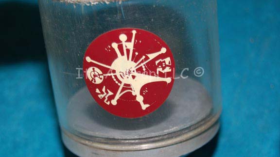 Description: A lot of two differently presented infirmary jars appearing variously in episodes of Star Trek: Deep Space Nine. One of the jars is a ‘found item’, a clear plastic jar with a white plastic screw on cap that features metallic gold adhesive detail lines and a Cardassian themed graphical application. The second item is a clear acrylic jar with metallic silver painted molded resin caps on both ends and featuring a Cardassian themed graphical application. The items measure approx. 4.75 X 2.5 inches diameter and 4 X 3 inches diameter.