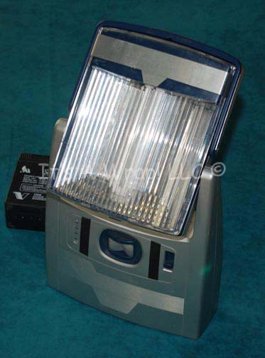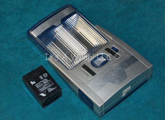 Description: A practical solar lantern like those featured in the Star Trek: Enterprise episode “Dear Doctor” for use by “Dr. Phlox” (John Billingsley) on away team missions. The untested item features multiple settings, power readout gage, a large solar collector on the reverse of the lamp, an extending handle, and multiple metallic silver adhesive accents. The lamp and solar collector are on a pivot and the battery is housed in the base and replaceable. The item measures approx. 8.25 X 15.25 X 2.5 inches.
