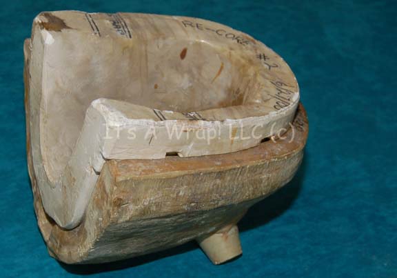 Description: A special effects make-up application mold made to create an application for the character “B’Elanna Torres” (Roxanne Dawson) in episodes of Star Trek: Voyager. The item is a heavy duty firing ceramic in two pieces, one bare, the other with the reverse mold of a Klingon forehead. The item is inscribed ‘Torres 10/98’ and the second piece reads ‘re-core #2 6/27/00’. The item stands on its flat bases or on the three built in feet of the face piece and measures approx. 8.5 X 9 X 8 inches.