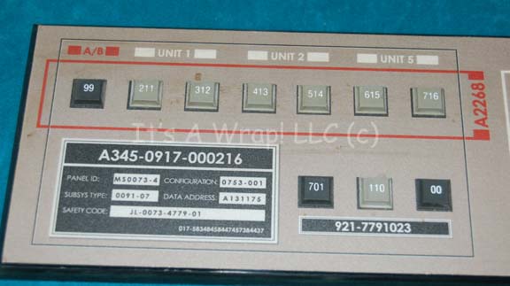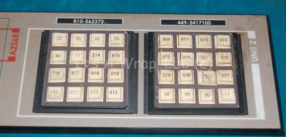 Description: A computer console button board like those appearing variously in episodes of Star Trek: Enterprise. The item is smoked acrylic with beveled edges and a graphical application on the face with two banks of non-depressive rubber faux buttons and a series of other buttons. The item measures approx. 15 X 4.5 inches.