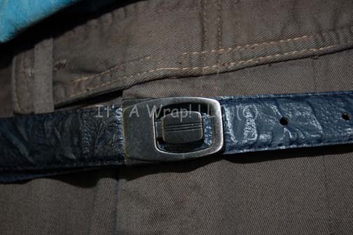 Description: A costume featured in the Star Trek: Deep Space Nine episode “The Siege”, wherein “Commander Sisko” (Avery Brooks) tries to keep an extremist faction of Bajorans known as “The Circle” from taking over the station and “Major Kira” (Nana Visitor) and “Lieutenant Dax” (Terry Farrell) race back to prove to the Bajoran government that the Cardassians are supplying them. This costume is for wear by Alexander Siddig in the role of the genetically enhanced Chief Medical Officer of Deep Space Nine, “Dr. Julian Bashir”, and is a long-sleeved, light-blue, silk shirt with a wrinkled print, olive-colored trousers, brown suede reinforcements halfway down the leg, stirrups for the feet; a long-sleeved, blue, leather/suede jacket, with a faux-scale pattern, and smooth blue suede around the cuff on one half, the opposite design on the other half, a belt around the middle, and a zip down the front. A sewn in Deep Space Nine tag reads ‘Mr. S. El Fadil’ and the costumer’s tag reads ‘DS9 423 The Siege, Bashir, Siddig El Fadil.