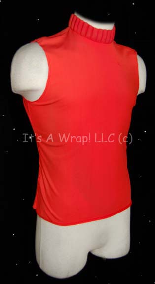 Description: A costume undershirt like those appearing in Star Trek II: The Wrath of Khan and Star Trek VI: The Undiscovered Country. The item is a red sleeveless undershirt with a ribbed collar and a zip up the spine for wear by Starfleet trainees on the “U.S.S. Enterprise”. The item features a sewn in Paramount tag reading ‘10’ and is believed to be for female wearers.