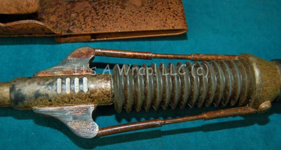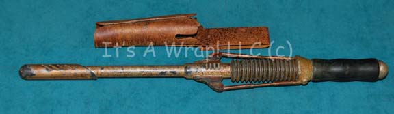 Description: A prop item used by multiple aliens in multiple episodes, but specifically by Klingons in the Star Trek: Enterprise episode "Judgment", and by Tandarans in "Detained". This Item is cast rubber and consists of a black vinyl handle, faux metal accents; a molded-plastic holster that is bolted onto s metal frame that clips to the belt. Both items are intentionally distressed to appear used. Dimensions are approx. 24 X 3 X 2 inches.
