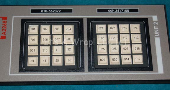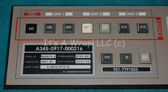 Description: A piece of set dressing similar to those featured in various episodes of Star Trek: Enterprise. This item is a rectangular piece of smoked acrylic featuring a graphical application, two identical pads of white, rubber, faux buttons with numerical values attached labeled ‘Unit 2’ on the right, and several smaller banks of similar multi-colored, faux buttons on the left, a Starfleet inventory ‘Panel ID’ in the lower left hand corner, and is beveled to add depth. The item measures approx. 16 X 4.5 inches.