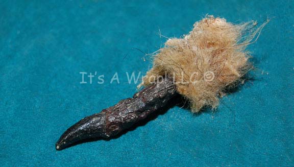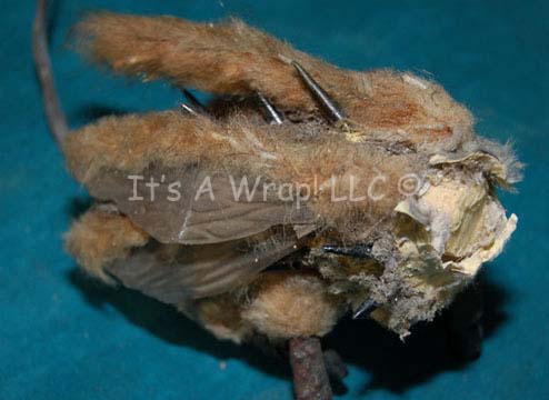 Description: A prop item featured in the Star Trek: Voyager episode “Timeless”; wherein “Voyager” crashes on an icy planet on the outskirts of the Alpha Quadrant killing everyone except “Ensign Kim” (Garrett Wang) and “Commander Chakotay” (Robert Beltran) who return to the planet fifteen years later with a plan to try and change history to prevent the crash from ever happening. This item is the Talaxian fur fly that hung in the engine room of “Neelix’s” (Ethan Phillips) ship for six years and is supposed to bring luck, he gave it to “B’Elanna Torres” (Roxann Dawson) when they were preparing to test the new quantum slipstream drive; it has a resin body, with black legs, wings and fur glued on. The fur has worn off in a few places; the head and one of the legs have broken off but are included and can be reattached. The item measures approx. 8 X 3 inches minus the head.