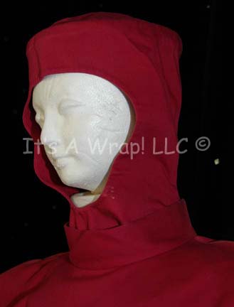 Description: A costume featured in the Star Trek: The Next Generation episode “Samaritan Snare”, wherein “Captain Picard” (Patrick Stewart) needs to have his cardiac implant replaced at Starbase 15 and the “Enterprise-D” deals with a group of Pakled who want to steal Federation technology. This costume is the standard 24th century surgical gown; a long-sleeved, knee-length, red gown, a zip down the back, matching trousers, a hood that tucks into the top of the gown, and ankle-length red, leather shoes. The gown has light fading on the left sleeve due to time and storage; a sewn in Deep Space Nine tag denotes reuse by ‘Griff James’ and a costumer's tag that reads ‘143 Samaritan Snare’ Anesthesiologist, Charles Geschind’.