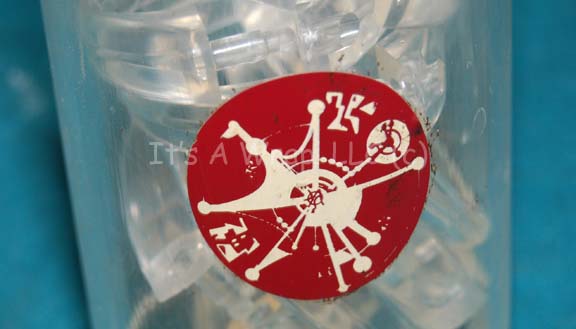 Description: A lot of two differently presented infirmary jars appearing variously in episodes of Star Trek: Deep Space Nine. One of the jars is a ‘found item’, a clear plastic jar with a white plastic screw on cap that features metallic gold adhesive detail lines and a Cardassian themed graphical application. The second item is a clear acrylic jar no lid which was located with eight clear plastic shower curtain rings within to busy the item appearance. The items measure approx. 4.75 X 2.5 inches diameter and 5 X 3 inches diameter.