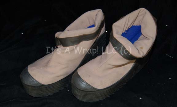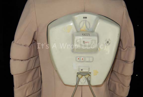 Description: A costume appearing in various Star Trek feature films for Starfleet personnel in the technical or special services fields. The costume is an off white jumpsuit with wide ring accents around the sleeves and legs, with loops for the attachment of equipment made from molded plastic components which are mounted onto the center back and chest, connected by metal wrapped wiring. The costume comes with matching boots with thick soles. Characters wearing this style of costume can be seen in the recreation deck scene in Star Trek I: The Motion Picture, working in the hall outside the training bridge at Starfleet Academy and running through the corridors of the “USS Enterprise-A” prior to battle with the “USS Reliant” in Star Trek II: The Wrath of Khan, and cleaning the observation area in space dock when the “USS Enterprise-A” is stolen by its command crew in Star Trek III: The Search for Spock.