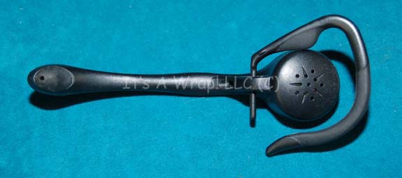 Description: A prop hands free ear piece (similar to modern Bluetooth devices) featured in the Star Trek: Enterprise episode “Cold Station 12”. The item appeared in scenes taking place in the set of the Denobulan medical ship “Barzai” for wear by “Persis” (Abby Brammell) and the Denobulan pilot. The item is black molded plastic with a rubber speaker cover and a swinging ear hook. The item does indicate the presence of technology but does not feature any readily available method of activation or apparent functionality. The item measures approx. 5.25 X 1.25 X 1 inches.