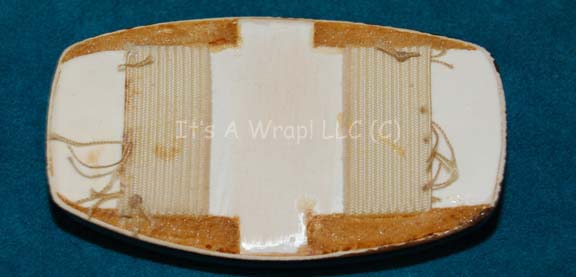 Description: A prop item featured on the uniforms of Starfleet officers and crewmen exclusively in Star Trek I: The Motion Picture. The items are injection molded plastic with foam filling in and feature sewn on elastic bands for attaching to corresponding uniforms (sold separately). The item is colored brown with black painted raised surfaces and metallic silver painted detail lines for dimension, and similarly painted accents to suggest technology. The item measures approx. 3 X 1.75 X 0.5 inches and it made to be worn on female costume uniforms.