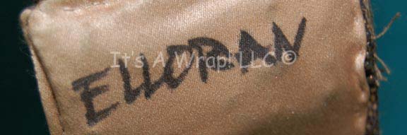 Description: A costume necklace featured in Star Trek IX: Insurrection for wear by a performer playing a Tarlac nurse. The item is gold and bronze colored rubber texture material with a gold colored interior lining. It joins at its ends by way of hooks and clasps and is inscribed erroneously as ‘Elloran’. When lying flat the item measures approx. 16.5 inches with a slight curvature.