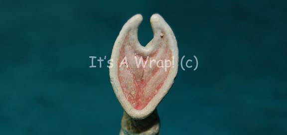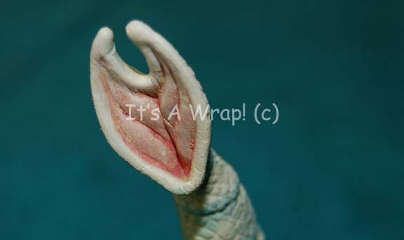 Description: A pair of antennae for use in episodes of Star Trek: Enterprise involving the subspecies of Andorians, the Aenar. These items are foam rubber molded in the shape of a pair of segmented antennae, painted white with light blue accents, flesh toned “receptors” at the tip with slight indentations that separate them from the shape of purely Andorian antennae. The items measure approx. 4 inches with a 1 inch base.