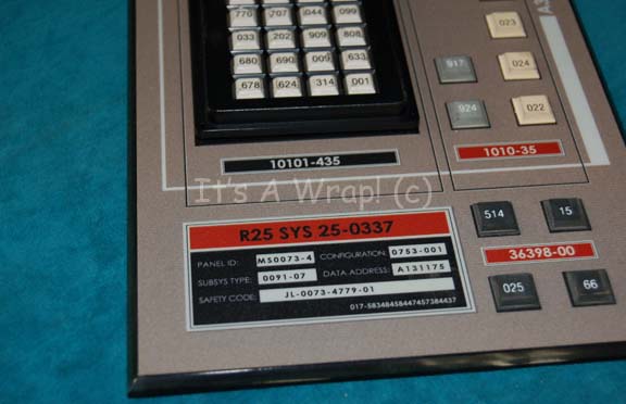 Description: A set dressing button board like those appearing variously on the set of the “Enterprise NX-01” in episodes of Star Trek: Enterprise. The item is smoked acrylic with beveled edges and a graphical application adhered to the face that depicts a Starfleet inventory application, a single bank of press buttons, and two lines of rubber faux buttons colored grey, white, and black. The item measures approx. 11 X 6.75 X 0.5 inches.