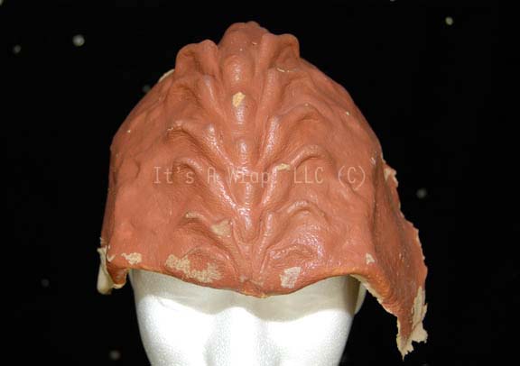 Description: A Klingon themed special effects make-up application like those appearing variously in Star Trek episodic television. The item is a Klingon forehead made from molded foam rubber and painted to match the brown flesh tone of these aliens. The item is supple and in good condition, some paint has been removed from contact with other pieces.