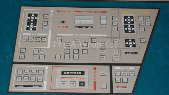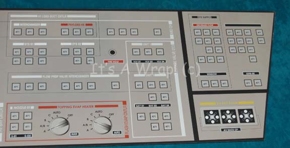 Description: A lot of four differently sized button boards created for episodes of Star Trek: Enterprise. The items are thin sheet plastic with multi-colored graphical applications adhered across the face that depict varying locations of dials, buttons, gages, switches, and their uses. The items are completely flat and do not include any of the aforementioned items, they are believed to be unused. Many of the functions the boards represent are detailed; they range from ‘Pod Release Control’, ‘Nose Wheel Steering’, FLT deck Avionics’, and Humidity Sep’, to ‘Yaw Jet Rudder’, ‘Manual’, ‘Event Timer 051’, and ‘AV Bay 3 Fan’. Two of the items measure approx. 10.5 X 16 inches, the other two measure approx. 45 X 10 inches, and 10.5 X 39.5 inches.