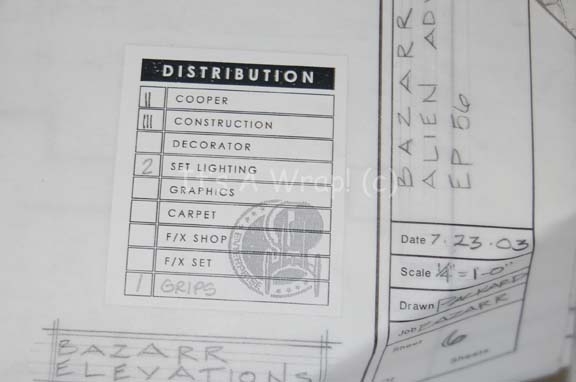 Description: A lot of schematics for sets featured in the Star Trek: Enterprise episode “Rajiin”; wherein “Enterprise NX-01” takes on a mysterious passenger who has more in mind than simply transport away from the planet she is being sold as a slave at. This lot consists of four separate schematics of the various buildings and alley ways that make up parts of the floating bazaar on the Xanthan home world. Details include labels, measurements and scale to the height of a person in comparison, episode name and number, and date. The episode “Rajiin” was originally called “Enemy Advances” and that name is reflected on the schematics.