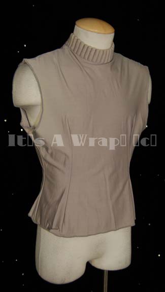 Description: A costume element like those featured in various Star Trek feature films from Star Trek II: The Wrath of Khan through Star Trek VII: Generations but specifically in the third feature film “The Search for Spock”. This item is a gray, sleeveless, Starfleet uniform undershirt featuring a ribbed collar, a zip down the back, and a sewn in Paramount tag reading ‘McGinnis’, presumably worn by Scott McGinnis in his role as the security lieutenant that “Uhura” (Nichelle Nichols) called “Mr. Adventure” during the ‘breakout scene’ in the film.