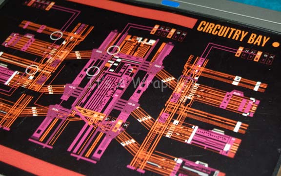 Description: A prop PADD (Personal Access Display Device) like those appearing in Star Trek IX: Insurrection believed to have appeared on the desk of “Captain Picard” (Patrick Stewart). The item is an injection molded plastic backlit electronic display device painted to match the production design of the film. The item is painted metallic silver with metallic gold and other multi-colored graphical accents with a Translite applied to the ‘display screen’. The Translite depicts a graphical rendering of ‘Circuit Bay 47’ and shows four points of interest exhibited by white circles. The graphic has lost a very little of its adhesive quality and peeled in the center. When connected to a ‘Visual Plus’ AC adaptor operating on 120volt power, the item can be activated by way of a switch on the right side. The adaptor is not included. Item measures approx. 14.5 X 10.75 X 1 inch. A fold out stand is present on the reverse that folds flush against the casing for a slimmer profile.