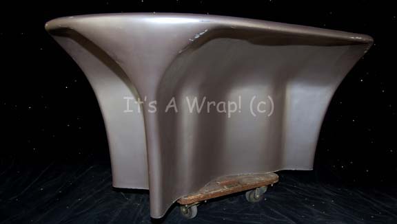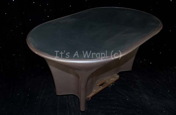 Description: A full sized galley table like those appearing in episodes of Star Trek: Enterprise on the “Enterprise NX-01” set. The item is a shaped fiberglass table with a metallic silver textured surface and a wood reinforced interior. The table mushrooms out at the top standing on a weighted base. The item depicts only the slightest of dings or scuffs and is in good overall condition. Even “Captain Archer’s” (Scott Bakula) private dining room table followed this same appearance. The item measures approx. 29 X 40.25 X 63 inches.