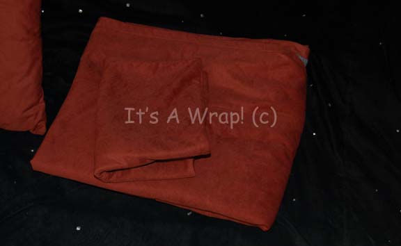 Description: A lot of extremely soft and comfortable pillow coverings, a matching fitted mattress covering, and three pillows appearing in the Star Trek: Enterprise episode “A Night In Sickbay” on the bed of “Captain Archer” (Scott Bakula). The fabric is beautiful, rich, maroon colored synthetic micro suede with a gray wool-like interior lining. The pillow cases are Velcro seamed on their reverse and plush, one being soft and thick, the others allowing for compression. The bed covering is fitted to the mattress used on the bed and measures approx. 84 X 69 inches.