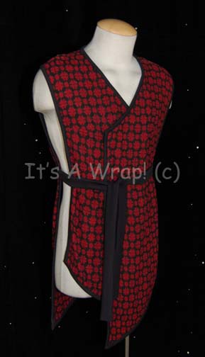 Description: A lot of costume elements featured in the Star Trek: Deep Space Nine episode “The Storyteller” and “In the Hands of the Prophets”. This lot consists of four black vests with a design of red, geometric shapes, black trim, and a black belt. Being that is was so early in the run of Deep Space Nine, the sewn in tags read ‘Star Trek: TNG’ instead but still have names in them except for one that was either left blank or has faded away; a costumer’s tag reads ‘DS9 #414, #420, The Storyteller, Bajoran Vests’. Included is the script for “In the Hands of the Prophets”; on the cover page of is a graphic of “Deep Space Nine” with the episode name, draft of the script it is, and the date; inside is the series name, episode name and number, the writer and director of the episode, followed by a list of sets used, a list of cast for the episode, and a pronunciation guide of any technical or alien terms.
