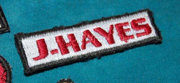 Description: A lot of patches located together to create the costume embellishments for the character “Major Hayes” as portrayed by Steven Culp in episodes of Star Trek: Enterprise like “The Shipment” and “Countdown”. The items are a triangular MACO assignment patch with a great white shark graphic and a white star reading out ‘Enterprise’, a multi-colored MACO division strip reading ‘Military Assault Command Ops’, a name strip reading ‘J. Hayes, and a rank patch with a glittering gold colored oak leaf indicating the rank of ‘major’. The name badge and rank appear to have been used but are in excellent condition.