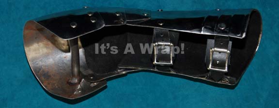 Description: A lot consisting of an Andorian Ushaan-tor and plate armor gauntlet like those appearing in the Star Trek: Enterprise episode “United” for use by “Captain Archer” (Scott Bakula) or “Shran” (Jeffrey Combs). The item is machined and polished metal with a wood hand grip painted black on a beveled edge made to appear serrated, a length of industrial strength cable with clasp ends, and a gauntlet made from polished metal with a hand grip inside, two leather buckles and a leather padded interior. The gauntlet features a welded on fin for the attachment of the clasp cable to a matching gauntlet (sold separately). The gauntlet measures approx. 14 X 4.5 X 5 inches while the Ushaan-tor measures approx. 15.5 X 6.25 X 1.5 inches, and the cable measures approx. 37 inches long. The items are in perfect condition and are expected to have an everlasting quality due to t heir incredible construction materials.
