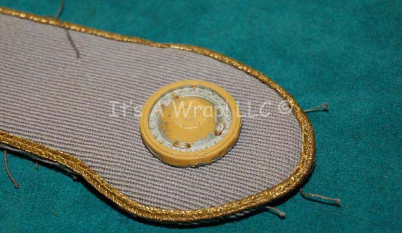 Description: A lot of two items like those featured in various Star Trek feature films. This lot consists of a over the shoulder, Special Services Blue division strip featuring a silver-colored ‘security disk’, metal rank pin denoting ‘Ensign’, gold trim, and a silver-colored metal reinforcement on the end to secure against the uniform. Included is a matching, cuff division strip itself featuring the same colors and trim in addition to two resin-cast, Starfleet commendations badges pinned upon it. Both items appear in good condition with a very limited amount of fraying.