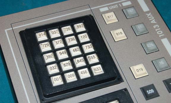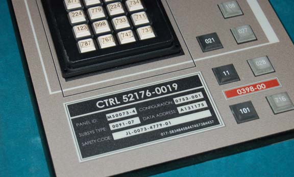 Description: A piece of set dressing like those featured in various episodes of Star Trek: Enterprise. The item is a piece of smoked acrylic with beveled edges and a graphical application adhered to the face that features an inventory inscription that reads ‘CTRL 52176-0019’. Multiple rubber faux-buttons with numerical values, and two banks of white buttons that depress and further faux rubber buttons coordinated in an area labeled ‘AUX 1013’. The item measures approx. 11 X7 inches.