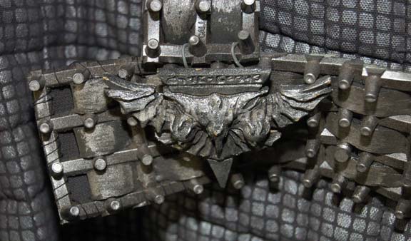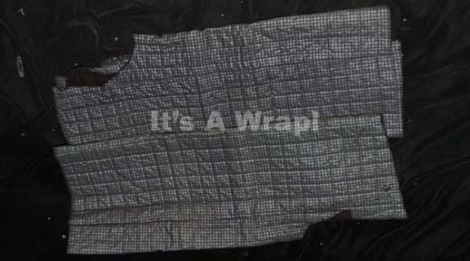 Description: A lot of costume elements like those featured in various episodes of Star Trek: The Next Generation. This lot consists of a complete but unfinished Romulan Military uniform, a black jacket arranged into quilted squares with reflective, silver-colored squares making up each of the larger squares; the jacket is left open on the sides and includes two unattached, mating sleeves and a dickie to wear underneath. A dark-gray rubber, Romulan-style, belt-harness featuring large rubber studs all over and with two matching rubber Romulan badges on the front, metallic-gray trousers, a pair of black and reflective silver-colored arm warmers one of which has a Velcro placement for a Romulan communicator, and a Romulan-style wig. A sewn in Star Trek: The Next Generation tag in the trousers reads ‘Tony Dolourheau’ and a Deep Space Nine tag reads ‘Nophan Large’. When combined, this lot creates a complete Romulan costume.