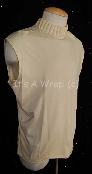 Description: A costume element featured in various Star Trek feature films from “The Wrath of Kahn” to the opening scenes of “Generations. This item is a Command white, sleeveless, Starfleet uniform undershirt with a ribbed collar, clasps at the neck and a zip down the back. The item appears to have been made for a larger actor.
