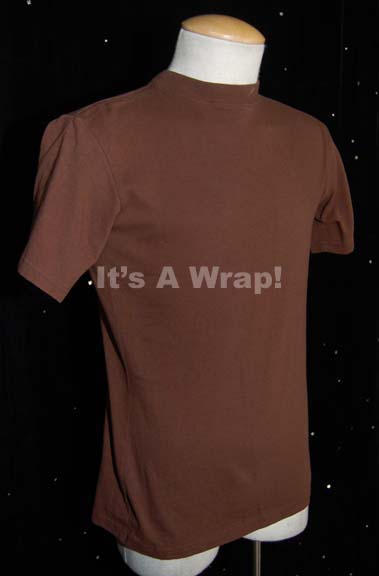Description: A costume element featured in various episodes of Star Trek: Enterprise for wear by Steven Culp as the M.A.C.O “Major Hayes”. This is item is a short-sleeved, brown t-shirt for wear beneath a M.A.C.O. uniform. A sewn in Enterprise tag reads ‘Steve Culp’.