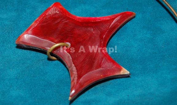 Description: A lot of Vulcan themed costume jewelry believed to have been created for Star Trek III: The Search for Spock. The items are fashioned from molded resin with metal embellishments. The head piece is mounted to a wire frame and the separated pieces are believed to be pendants. The right side piece on the head piece depicts evidence of repair. The items measure approx. 16 X 6 inches, 2 X 4.5 X 0.75 inches, and 2.5 X 2.5 X 0.5 inches.