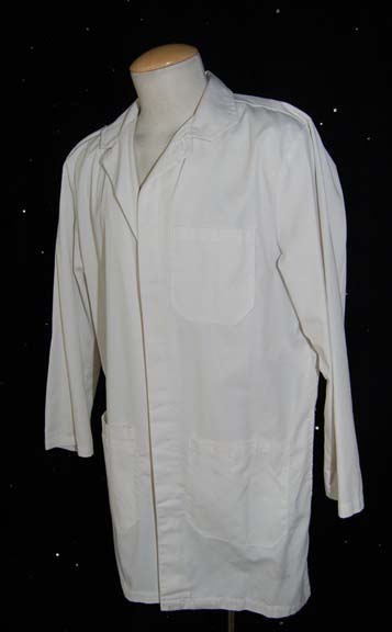 Description: A lot of two items featured in the Star Trek: Enterprise episode “Cold Station 12; wherein “Arik Soong” (Brent Spiner) and his Augments assault “Cold Station 12”, a Starfleet research lab, in an attempt to obtain the rest of the Augment embryos that are frozen there. This lot consists of two white, long-sleeved, collared, doctor’s lab coats with pockets at the waist and one on the left breast. There is makeup residue around the collar of one coat due to production use, both have sewn in Enterprise tags that read ‘Kris Iyer’, and an attached costumer’s tag that reads ‘Enterprise 081 Cold Station 12, Deputy Director, Kris Iyer’.