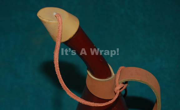 Description: A prop item similar to those featured throughout the Star Trek episodic television pantheon. This prop item is a bottle of Saurian brandy; it is deep red in color, the general shape of a regular wine if the neck had been bent to the side, a strap of leather cord glued to the side and a tan “cork” in the top. The bottle has a height of approx. 14 inches and a diameter of approx. 4 inches.