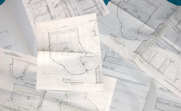 Description: A lot of schematics for the conference room of the titular starship “Voyager” and detail of the bath tub “Neelix” (Ethan Philips) is in in the pilot episode “Caretaker”. The schematics have various measurements, multiple views of the conference room, names, dates, episode names and numbers.