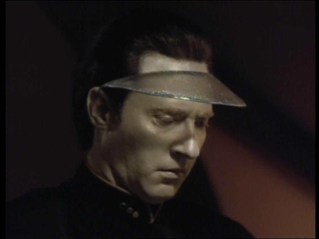 Description: A wire and dichroic-finish plastic visor -- made for Brent Spiner as Data during poker game scenes in <I>Star Trek: The Next Generation</I> including "Descent, Part I" in which Data played poker with real-life scientist Dr. Stephen Hawking, and in "All Good Things" the final episode of <I>Star Trek: The Next Generation</I>