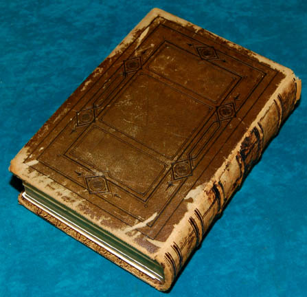 Description: A hardback book featured in Star Trek: Enterprise episodic television. The book is vintage and features a graphical application of ‘Vulcan’ iconography adhered, and several pages inside have been added featuring the same iconography. The book itself is in actuality ‘The Family Library of Poetry and Song Being Choice Selections from the Best Poets, English, Scottish, Irish, and American; Including Translations from the German, Spanish, French, Portuguese, Persian, Latin, Greek, etc., Edited by William Cullen Bryan’. The copy write page indicates ‘By J.B. Ford and Company, in 1870. By Ford, Howard, and Hulbert, in 1878 and 1880’. The page count is 1065 and it measures approx. 10 X 7 X 2.75 inches.