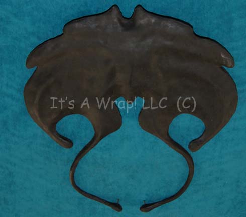 Description: A model embryonic life featured in the Star Trek: Deep Space Nine episode “Q-Less”. The creature appeared as a crystalline auction item brought to the station by “Vash” (Jennifer Hetrick) until it was discovered to be the cause of some recent troubles on “Deep Space Nine” and allowed to escape back into space, and through the Wormhole. The item is actually black colored molded rubber with a bottom mounted placement for a motion control bar and two small pegs in the tails for much the same. The item measures approx. 29.5 x 22 x 1.5 inches.