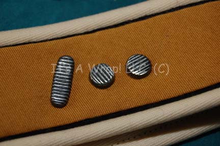 Description: A Starfleet engineer’s white radiological suit retaining to some degree its configuration for Star Trek I: The Motion Picture. The costume is a full length white jumpsuit with ribbing at the waist and elbows, and features an attached pair of silver colored metal ‘U’ shaped accents at the waist that would be rigging loops in the following Star Trek feature films. The costume also features a copper colored foil center chest accent that is affixed, but has lost the protruding element. Groupings of threads remain as evidence of removed items. The costume features these unattached elements for a depiction of Star Trek I: a pair of white gloves, a pair of red engineering division-rank strips for the shoulders with triangular gold thread accents indicating the wearer to be a ‘petty officer’. The costume also comes with these unattached elements to better complete it for further feature use: a black foam rubber collar to which some of the adhered ribbing aspects have begun to loosen (not pictured) , a pair of white gloves with black tubing ‘thermal’ accents, a pair of thickly black soled boots, a pair of yellow engineering division strips for the shoulders, a white bordered yellow division strip for the left forearm sleeve with a pair of silver colored metal ‘5 year service’ pins and a matching commendation bar, a white placement with an attached silver and gold colored metal ‘ensign’ rank badge, a metallic silver pin backed name badge with ‘STRAN’ etched into it, a silver colored reflective waist accent, a pair of black tubed thigh ‘thermal’ accents, and a similar one for the left shoulder. The costume also comes with a costumer’s tag reading ‘MacKing’.