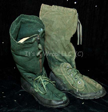 Description: A costume featured in the last TNG era feature film, Star Trek: Nemesis by a species called the Kolarans and reused in the Enterprise episodes “Terra Prime” and “Demons” as jumpsuits for the Orpheus Mining Colony on the moon. This costume consists of a long-sleeved, full-length jumpsuit in a distressed, yellowed brown color featuring diagonal quilting along the shoulders, Velcro and laced wrist cuff adjustment, a zip down the front, reinforced quilting at the knees, zipped and laced ankle cuff adjustment. Also included is a piece of heavy-duty, leather body armor featuring metal and rubber accents on the front, various straps and snaps to secure it, netting to help the wearer stay cool, and olive-green , high-topped, canvas shoes that tie and then zip up the front. For use in the Enterprise episodes, this costume had the body armor removed and added a patch under the right shoulder that reads “Orpheus Mining Colony, Est. 2090, Sine Qua Non”. A sewn in Enterprise tag reads ‘Dave Anderson, #96’.