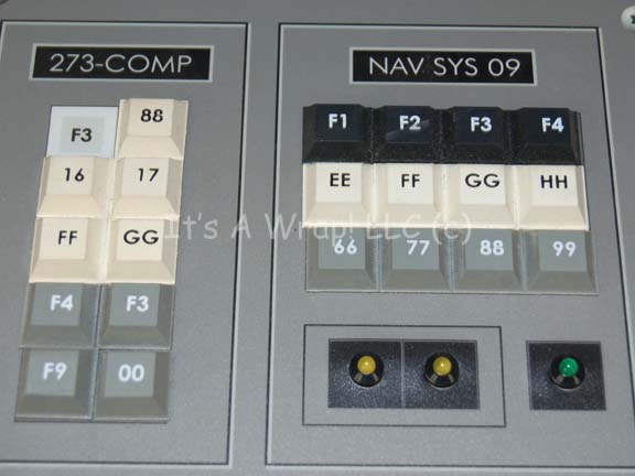 Description: A prop computer console interface featured in the Star Trek: Enterprise episode “Demons” and “Terra Prime”. The item was carefully removed from a large console before set strike where it had been part of the desk used by “Frederick Paxton” (Peter Weller). The item is a sturdy shaped piece of sheet plastic with rubber faux buttons adhered across the face of a graphical application. The item feature multiple embedded multi-colored light bulbs and corresponding wiring on the reverse that has not proven to function but is intact. The button banks are labeled for relative ‘functions’ and one actual button is believed to activate the lights when appropriately powered. The item measures approx. 41.5 X 19.