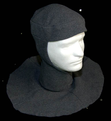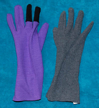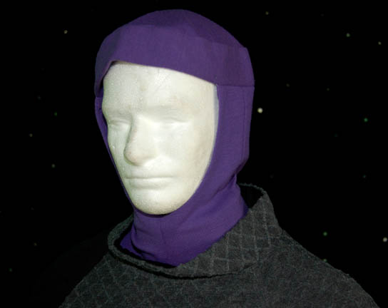 Description: The Moneans are a humanoid space traveling species that after leading a nomadic existence ended up settling on a unique waterworld planet. Featured in the Star Trek Voyager episode “Thirty Days”, this Monean costume includes a purple jumpsuit with one gray sleeve and a zip up the back. Worn over the top is a gray top with one short gray sleeve and a longer black sleeve. The top has a diamond pattern over its entirety and is tapered into a flat point at the front and back. Two cowls, one purple the other gray accompany the costume. Also included is one purple glove and one gray glove. Two finger tips on the purple glove are black. Costume comes complete with costume tag that lists the episode by its working title of “Down Deep”.
