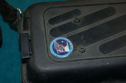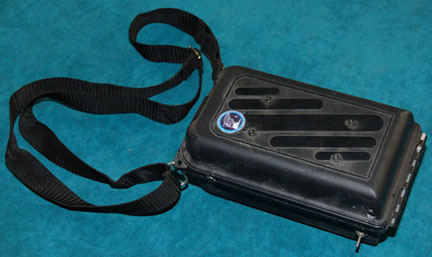 Description: A set of prop items featured in Star Trek VII: Generations for use by media personnel attending the launch of the “USS Enterprise-B”. The items are comprised of modified practical elements, a pair of ‘camera’ headsets, one features a working strobeing red light powered by a single 9volt battery with an additional battery pack connected by wire that is powered by three SF123A sized 3volt batteries (not included) that activates a powerful spotlight on the left side. An acrylic eye piece is attached on the right side. A second headset is present with untested electronics and unattached pieces. The second headset can be connected to a black battery box that features a shoulder strap and an affixed graphical application listing the item as ‘Press and Information – United Federation of Planets’ with a depiction of a metallic wing. The headsets measure approx 7.5 X 7 X 12 inches with variations for size and adjustments, the battery box measures approx. 8.5 X 4.75 X 3.5 inches.