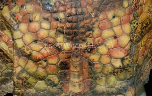 Description: A special effects head and chest piece featured in various episodes of the third season of Star Trek: Enterprise. Their facial structure is distinctly reptilian with scaly ridges and prominent brows. Small tusks protrude from around the mouth and black spikes protrude from their heads. This delicate latex prosthetic was used to create the Xindi-reptilian appearance and is airbrushed extensively to create skin texture, shadows and definition. A matching chest and shoulder piece is included; latex as well, featuring larger tusks than the face and made with the same texture, shadows, and definition, it is known to be worn by Scott MacDonald in the role of the most prolific Xindi-Reptilian on the show, “Commander Dolim”.