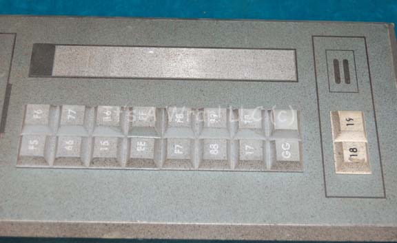 Description: A button panel like those appearing variously in episodes of Star Trek: Enterprise like “Horizon” and “First Flight”. The item is fashioned wood with rubber faux buttons affixed to the face. A graphical application is adhered to the face as well. The edges of the face are beveled to depth and the wood is painted metallic silver. Measures approx. 14.5 X 6 X 1 inch.