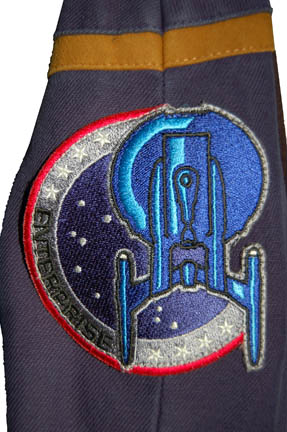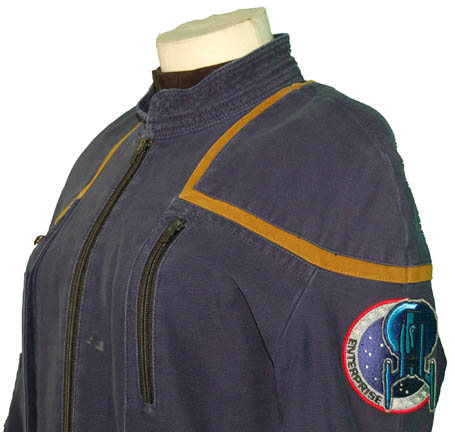 Description: A Starfleet uniform jumpsuit including the famous ‘Enterprise NX-01' left shoulder patch with gold command division trim around the shoulders. “Enterprise” costumes feature multiple zippered pockets, Velcro size adjustments at the wrist and ankles, and come complete with a black undershirt (this one a long sleeved tee).