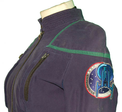 Description: A Starfleet uniform jumpsuit including the famous ‘Enterprise NX-01' left shoulder patch with blue sciences division trim around the shoulders. “Enterprise” costumes feature multiple zippered pockets, Velcro size adjustments at the wrist and ankles, and come complete with a black undershirt (this one a sleeveless tee) with detachable shoulder pads.